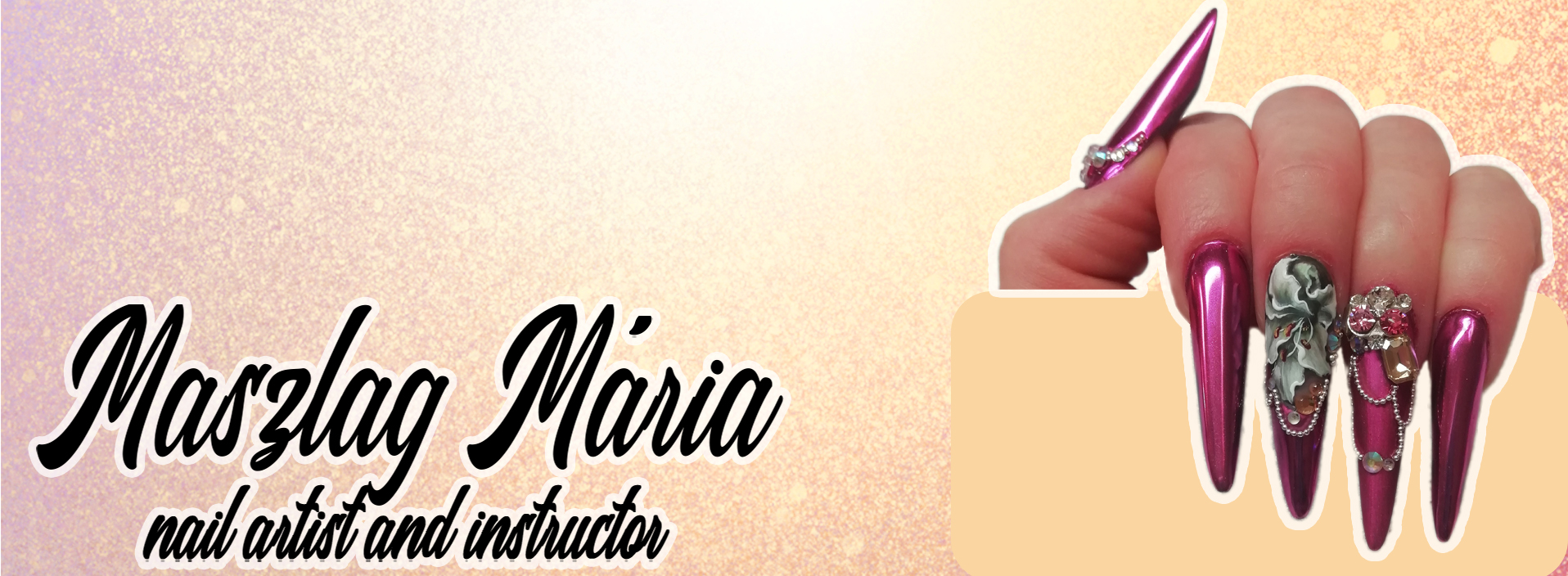 Maszlag Mária vagyok, mesterleveles oktató. Kéz-, lábápoló és műköröm építő bizonyítványom 2009-ben szereztem. Eleinte hobbiként tekintettem erre a csodás szakmára, amiben feltöltődhettem és elkezdtem kiteljesedni. Elsőként a díszítés volt, ami megragadott, az aprólékos miniatűr művészet. 2011-ben éreztem azt, hogy szeretném magam megmérettetni, és elindultam a díszítő versenyek világába. Azt hiszem a szakma iránti alázat ott kezdett szenvedéllyé is válni. Az érzés azóta is megmaradt, akár csak a folyamatos fejlődés iránti vágyam. A mai napig aktívan versenyzek díszítő versenyszámokban, és segítem a hozzám forduló tanulókat a felkészülésben. 2012-től tartok díszítő tovább képzéseket. Szívem csücske a zselés festési technikák ezek közül is a virágok és portrék. 2019 januárjától foglalkozom alapképzéssel. Lakóhelyemen, Csongrádon várom szeretettel a kézápoló, és műkörömépítő okj-s képzés iránt érdeklődőket. Maximalista vagyok, ezért célom, hogy a tanulóimnak a lehető legtöbbet adjam. Gyakorlat orientált képzéseim során biztos, és használható tudással gazdagodjanak. Mottóm: Csináld azt, amit szeretsz, szeresd azt, amit csinálsz, és adj többet, mint, amit ígérsz.
